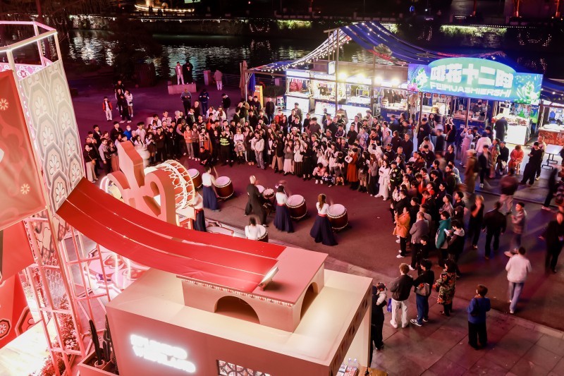 活动复刻西域市集盛景,长幔天幕、民族纹样、驼铃灯影、特色美陈交织成境,一步一景尽是丝路风华。传统鼓队现场演绎,华夏鼓点与西域节奏交融,奏响跨越时空的文化共鸣。联动春糖参展葡萄酒品牌,开设葡萄酒沙龙派对,让千年酒香漫溢锦江夜色。